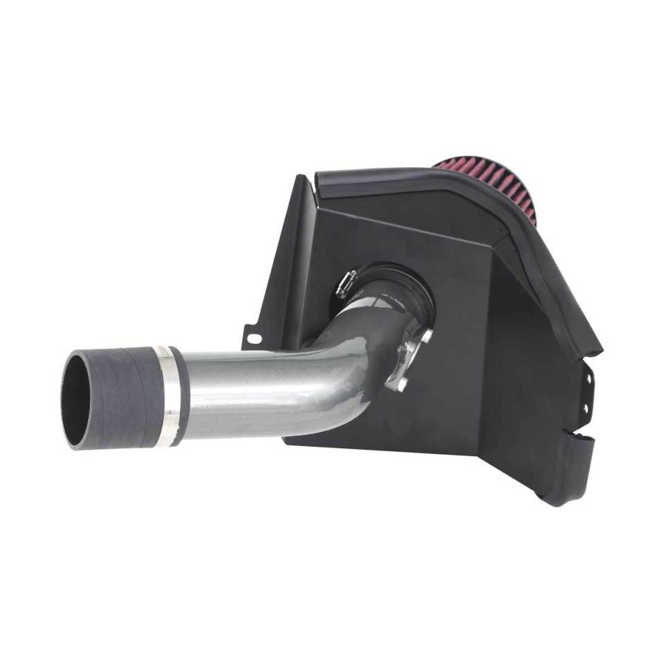 The mandrel-bent aluminum intake tube improves airflow efficiency while maintaining strength and durability, contributing to overall engine performance. A custom heat shield is included to protect the intake air from the high temperatures generated within the engine bay, ensuring cooler, denser air enters the engine for better combustion. The factory fresh air duct attaches seamlessly to the heat shield, simplifying installation and maintaining the vehicle's original airflow path.
