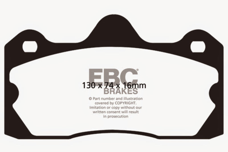EBC Yellowstuff Rear Brake Pads are engineered with an aramid fiber-based compound designed for exceptional braking performance both on the street and at the track. These pads deliver strong braking effect from cold, eliminating the need for warm-up, and become even more effective under the high temperatures of aggressive driving. Crafted for drivers who demand reliable stopping power in various conditions, Yellowstuff pads are ideal for spirited street driving or competitive racing. Their design ensures rotor friendliness while providing consistent brake response, making them a popular choice among motorsport enthusiasts and daily drivers alike. They have been extensively tested in professional racing environments, including the Swedish Camaro Cup and numerous race events where stock caliper systems are used, affirming their durability and performance. Notably, 90% of Mazda MX5 Miata competitors in the UK race series rely on Yellowstuff pads, further establishing their reputation for high-performance braking. These pads are suitable for vehicles up to 2000 lbs and 200 BHP, with positive feedback from drivers in the SCCA and NASA organizations, including a major testing event involving 543 drivers, underscoring their proven track record. Designed to fit the Lotus Evora models from 2010 through 2016, these brake pads are a reliable upgrade for those seeking improved braking efficiency, durability, and rotor friendliness without sacrificing everyday usability. The pads are compatible with FMSI Pad No. D1599 and feature dimensions tailored for precise fitment and optimal performance. Whether for street use, track days, or racing applications, EBC Yellowstuff brake pads offer a high-performance solution for discerning drivers seeking consistent, powerful braking with a well-established motorsport pedigree.