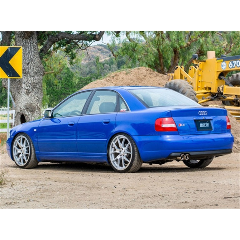 Experience the signature sound of power with the Borla 00-02 Audi S4 2.7L V6 All Wheel Drive SS Catback Exhaust System. Designed to deliver an exhilarating auditory experience, this exhaust system enhances the sound profile of your vehicle, creating a concert of steel, gears, and combustion that energizes every drive. Borla*s patented technology and extensive sound analysis ensure a refined yet aggressive exhaust note that resonates from the speedways to the highways, establishing itself as the quintessential soundtrack for high-performance driving. The system not only elevates the auditory appeal but also offers functional benefits, providing acoustic feedback that helps drivers make critical decisions such as gear selection and throttle input, especially during rev-match shifting. This feedback fosters a more connected and confident driving experience, making every journey more engaging and precise. Crafted for the 2000-2002 Audi B5 S4 Quattro with a 2.7T V6 engine, compatible with both automatic and manual transmissions, this system is engineered for all-wheel-drive, four-door configurations. Borla*s commitment to quality is reflected in the Million Mile Warranty, offering durability and peace of mind for the long haul. Constructed with high-quality materials, the system is designed to withstand road and track conditions while maintaining optimal performance. With a focus on sound clarity and performance, the Borla catback exhaust system enhances your vehicle's personality and driving dynamics, transforming your Audi S4 into a more responsive and exhilarating machine.