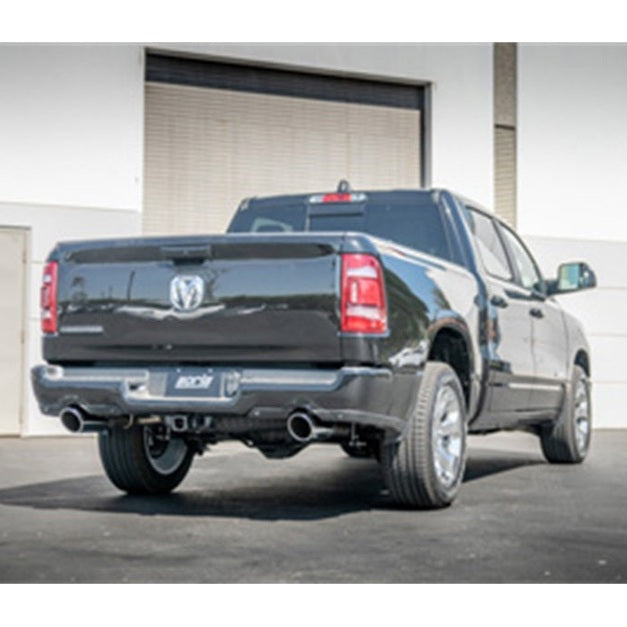 Enhance your Ram 1500's performance and sound with the Borla Atak SS Cat-Back Exhaust System designed specifically for 2019-2024 models equipped with the 5.7L V8 engine. Crafted from premium T-304 stainless steel, this system features ultra-smooth mandrel bends that maximize exhaust flow and horsepower, delivering a noticeable boost in driving excitement and fuel economy. The system's innovative multi-core technology ensures a deep, aggressive ATAK? sound with no drone inside the cabin, providing an exhilarating driving experience. Exiting through a single 5-inch round bright chrome tip on each tailpipe, the system is designed for easy installation through factory bumper cut-outs, with notches on the bottom for a clean fit. An optional resonator (part number 60667) can be added to further dampen sound levels, tailoring the exhaust note to your preference. Each Borla system is precision CNC manufactured for perfect fitment and long-lasting durability, backed by a Million-Mile Warranty, exemplifying Borla's commitment to quality and performance. Suitable for both 2WD and 4WD configurations, including Crew and Quad Cab models with various bed lengths, this system is engineered for today's demanding enthusiasts who want a combination of power, sound, and reliability. Please note, this exhaust system does not fit Ram Classic models or vehicles without the G/T package or Rebel trim. Experience the unmistakable Borla Sound of Power with a system built to unleash your truck's full potential.
