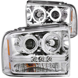 ANZO 2005-2007 Ford Excursion Projector Headlights with Halo and LED Strip, Chrome Housing Pair