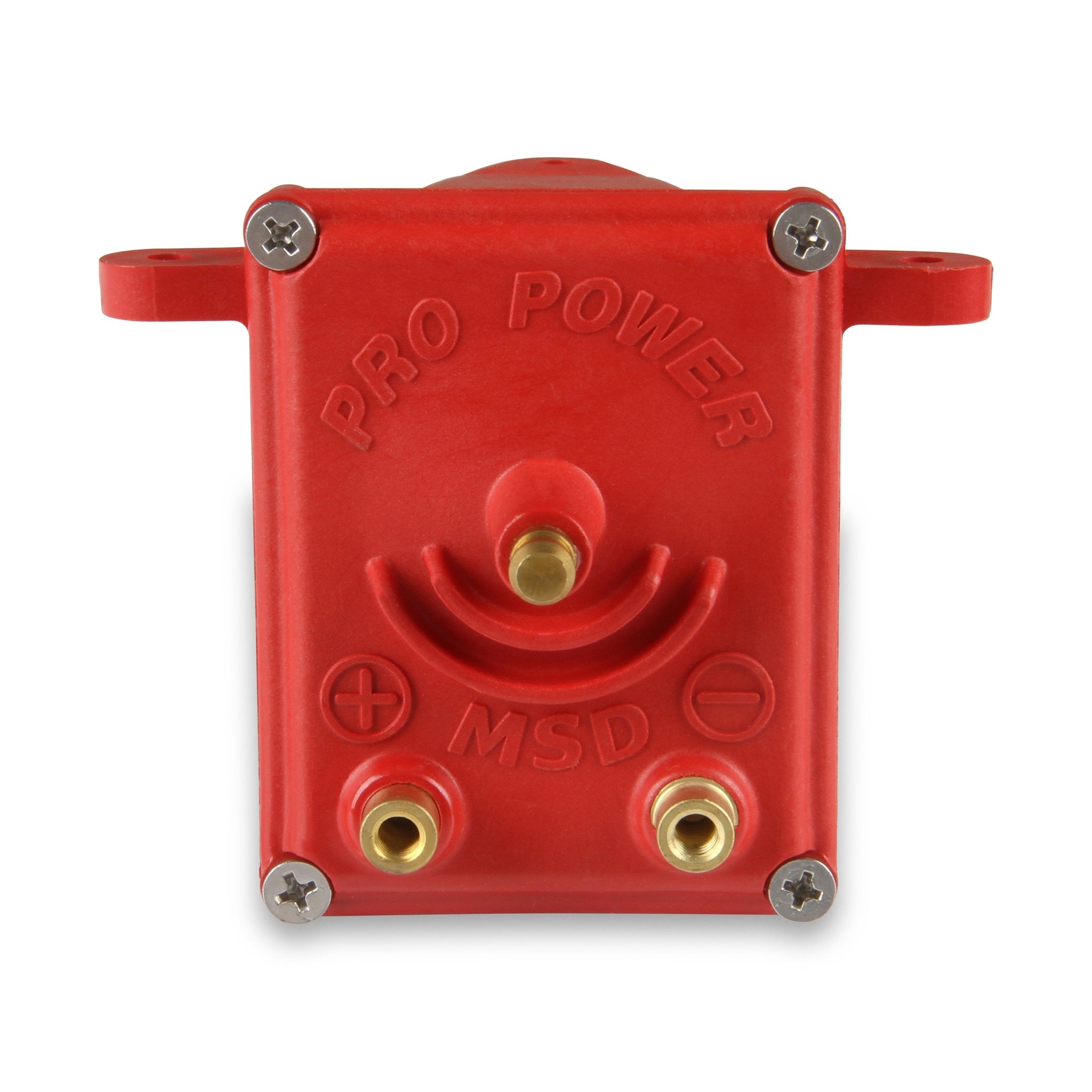 The special windings of the Pro Power Coil have extremely low resistance to produce the highest voltage possible with plenty of spark energy when used with an MSD 7 or 8 Series Ignition Control. The MSD Pro Power Coil is a great choice for short-duration applications such as drag racing.