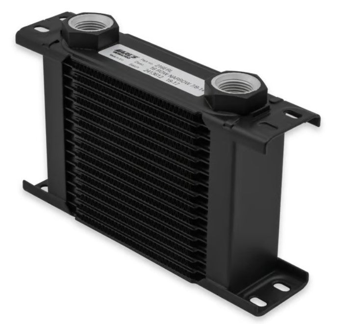 Upgrade your vehicle’s cooling performance with the Earl’s 19 Row UltraPro Narrow Oil Cooler, engineered for maximum heat dissipation and durability. Designed using state-of-the-art brazing technology, this high-performance stacked plate cooler delivers exceptional efficiency with minimal pressure drop — ideal for demanding engine oil, transmission, differential, or power steering applications. Crafted from lightweight aluminum with a sleek black finish, the UltraPro Cooler provides reliable temperature control under extreme conditions. Whether on the street or track, it ensures optimal fluid cooling to maintain consistent performance and protect critical components from overheating.