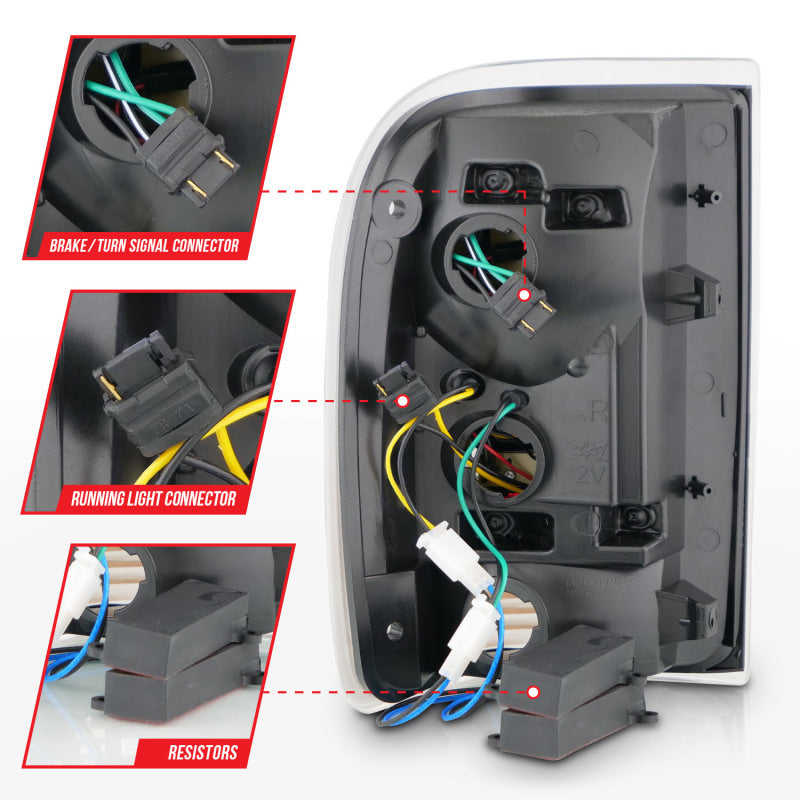 Enhance the appearance and safety of your Ford Ranger with the ANZO Part Number ANZ311359 LED Tail Light Assembly. Designed specifically for 1993-1997 Ford Ranger models, these tail lights feature a sleek black housing combined with a clear lens and integrated light bar, providing a modern and stylish upgrade. Crafted for easy installation, these plug-and-play tail lights utilize stock mounting locations and hardware, requiring no modifications or complex tools. Rigorously tested for fit and function, they meet D.O.T. and SAE standards, ensuring compliance and reliable performance. Sold as a pair, these tail lights are a perfect choice for drivers seeking both aesthetic enhancement and functional reliability. The assembly’s LED technology offers brighter illumination and longer lifespan compared to traditional bulbs, improving visibility and safety on the road. With a one-year warranty covering manufacturer defects, you can trust these tail lights to deliver lasting quality and confidence in your vehicle’s lighting system. Whether you're restoring your truck or upgrading its look, these tail lights provide a straightforward, high-quality solution that combines style, durability, and ease of installation.