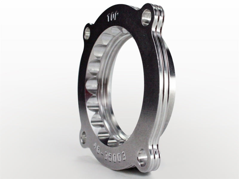 Enhance your Jeep Wrangler's performance with the aFe Silver Bullet Throttle Body Spacer Kit, designed specifically for models from 2012 to 2017 with a V6-3.6L engine. Crafted from durable T-6061 billet aluminum, this spacer features a unique serrated and helix entry that creates turbulence in the incoming air flow, improving combustion efficiency. The turbulence increases horsepower, torque, throttle response, and fuel efficiency, providing an immediate boost in driving dynamics. Its precision engineering ensures a perfect fit and seamless installation, making it an ideal upgrade for enthusiasts seeking both performance and reliability. The Silver Bullet's design also eliminates the common whistle found in other helix-only spacers, ensuring a smooth and quiet operation. This product is EPA compliant and not CARB exempt, making it suitable for use in various regions without legal concerns. The spacer*s compact dimensions ensure compatibility with your vehicle's intake system without requiring extensive modifications. Whether you're looking to improve your off-road adventures or daily driving, the Silver Bullet Spacer offers a straightforward upgrade with noticeable performance gains. Investing in this high-quality component can lead to better acceleration, fuel economy, and overall engine responsiveness, making your Jeep Wrangler more enjoyable and efficient to drive.