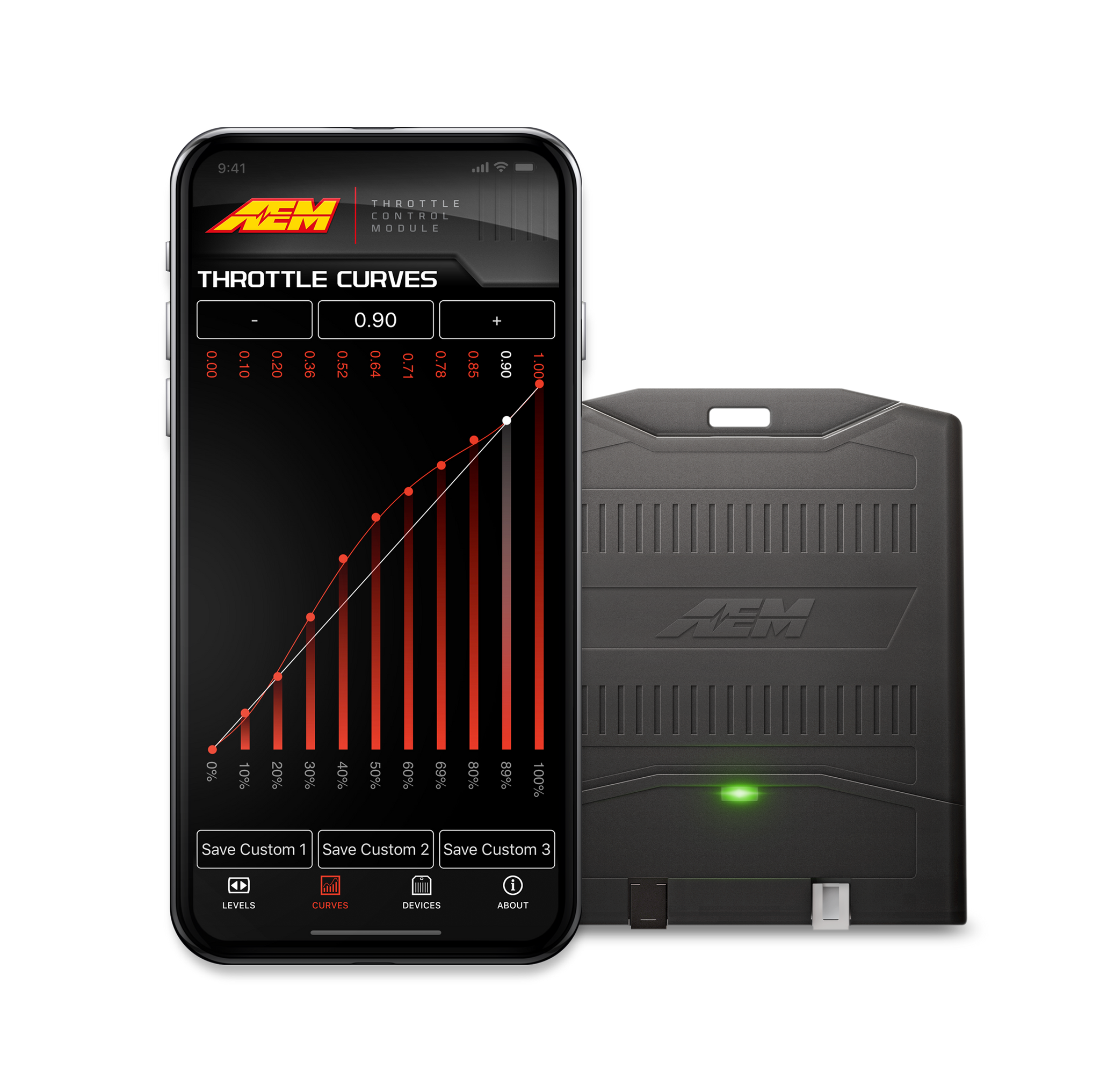 The AEM TCM (Throttle Control Module) instantly puts YOU in CONTROL. Get rid of laggy acceleration and dead pedal with an AEM TCM. Wirelessly program your own throttle curves with your Phone when using the AEM TCM APP. You can use one of 5 preset throttle curves or customize and save up to 3 of your own. Be in CONTROL and dial in your throttle curve just the way you want. Installation is plug & play through your accelerator pedal harness. Phone APP support will be for both Andriod and iOS. Our APP is user-friendly with intuitive functions to help you take CONTROL. More vehicle application support to come.