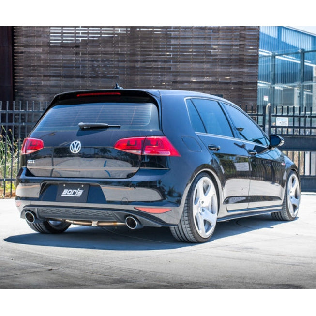 Enhance your 2015-2017 Volkswagen GTI MK7 with the Borla S-Type Cat-Back Exhaust System, designed for both automatic and manual transmissions in front-wheel-drive configurations. Crafted from high-quality T-304 stainless steel, this system ensures superior durability and corrosion resistance, outperforming T-400 series alternatives. The system features a 3-inch diameter inlet feeding into dual 2.25-inch pipes, delivering a deep, aggressive exhaust note with no drone inside the vehicle, making it ideal for enthusiasts seeking a powerful sound without sacrificing comfort. The ultra-smooth mandrel bends optimize exhaust flow, maximizing horsepower, torque, and fuel efficiency, while CNC precision manufacturing guarantees a perfect fit for your vehicle. The system's polished bright chrome tips add a sleek aesthetic, complementing your car's sporty appearance. Optional resonator 60666 can be added for additional sound reduction, providing a more refined Touring sound level, although it is not compatible with the OEM exhaust system. Borla*s patented straight-through and multi-core technology unlock hidden performance potential, resulting in increased exhaust velocity and a signature Borla sound recognized worldwide. Backed by a Million-Mile Warranty, this exhaust system exemplifies Borla*s commitment to quality, performance, and customer satisfaction. Easy to install and designed specifically for the MK7 chassis, it transforms your GTI*s exhaust note and performance profile, making every drive more exhilarating. Whether you seek a louder, more aggressive tone or a refined, touring sound, this system offers versatile options to customize your vehicle*s exhaust experience. Please note, this system does not fit MK7.5 models but is perfect for the 2015-2017 Volkswagen GTI MK7 models, delivering outstanding performance and durability.