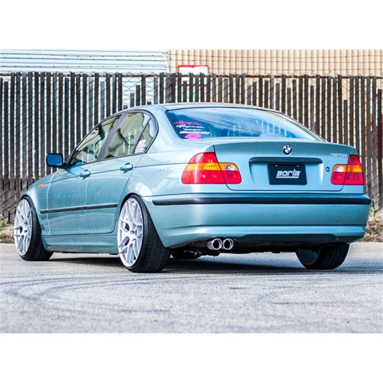 Experience the iconic Borla? sound of power with the S-Type Cat-Back exhaust system designed specifically for 1999 to 2006 BMW E46 325i and 330i models. Crafted to deliver an exhilarating auditory experience, this exhaust system produces a powerful and unmistakable tone that has been described as a sonic shot of adrenaline, echoing across speedways, deserts, and highways worldwide. The Borla? exhaust note is recognized as the soundtrack of high-performance motoring, providing not only an enhanced sound but also functional benefits that improve driving dynamics. The system's design allows drivers to receive critical acoustic feedback, aiding in gear selection and throttle input during rev-match shifting, thus enhancing overall control and performance. Built with advanced technology, Borla engineers utilize computer modeling, extensive prototyping, and sound analysis to fine-tune each exhaust system for optimal sound and performance. The result is a refined exhaust note that helps drivers stay within the vehicle's powerband, especially during challenging driving sections, making every drive more engaging and responsive.
