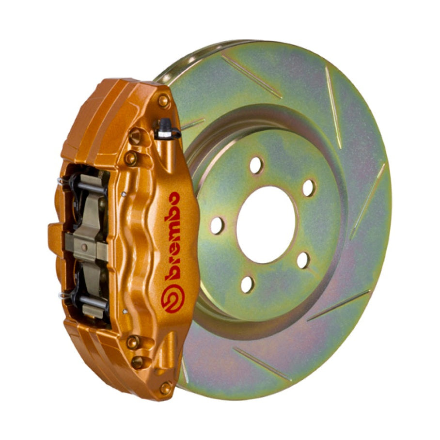 Upgrade your Subaru Impreza and WRX with the Brembo 02-07 Impreza/WRX and 2008-2014 WRX Front GT Big Brake Kit, designed for enhanced stopping power and performance. This kit features a high-quality 4-piston cast aluminum caliper and a 326 mm (12.8 inches) slotted rotor, providing improved heat dissipation and consistent braking during demanding driving conditions. The slotted rotor design helps reduce brake fade and maintains optimal contact with brake pads, ensuring reliable braking response. Finished in a striking gold color, these brakes not only perform exceptionally but also add a sporty aesthetic to your vehicle*s front end.