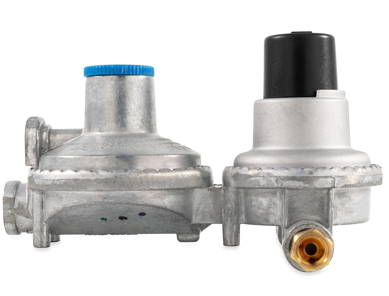 This setup allows you to remove the empty cylinder for refill without shutting down your propane system. Built for proper fitment with common RV propane connections, the regulator features 1/4" SAE inverted flare inlets and a 3/8" NPT female pipe thread outlet. Capacity is rated at 210,000 BTU/hr for the primary cylinder and 130,000 BTU/hr for the reserve cylinder.