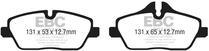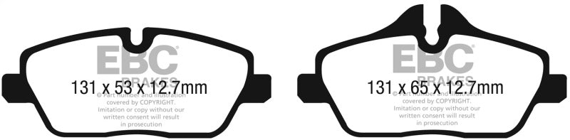 The EBC Ultimax OEM Replacement Front Brake Pads are engineered to provide reliable stopping power for BMW i3 models from 2014 to 2018. Manufactured in the UK at the Bristol EBC Brakes facility, these pads feature a meticulously crafted brake compound designed for durability, minimal dust production, and consistent performance for daily urban driving. Their universal heat range and low rotor wear make them suitable for a variety of driving conditions, offering drivers peace of mind on the road. These pads include a small percentage of steel fiber, carefully balanced to optimize performance without compromising safety or longevity. Once properly bedded in, the Ultimax pads deliver confident braking response, enhancing safety and driver confidence for light trucks, SUVs, and passenger vehicles alike. The black-coded Ultimax range is fully ECE R 90 approved, ensuring compliance with safety standards while offering excellent value at less than half the cost of original equipment parts. This approval signifies that the pads are totally equivalent in safety and performance to OEM parts, making them a smart choice for cost-conscious drivers seeking quality replacements. When installing new brake pads, it is crucial to prioritize safety; consult a professional mechanic or use the EBC installation DVD, available online, as a helpful guide aligned with your vehicle*s manual. These pads are designed to fit the BMW i3 models listed, providing an OEM-like fit and performance that has remained unchanged for over ten years, underscoring their popularity and proven track record among customers worldwide.