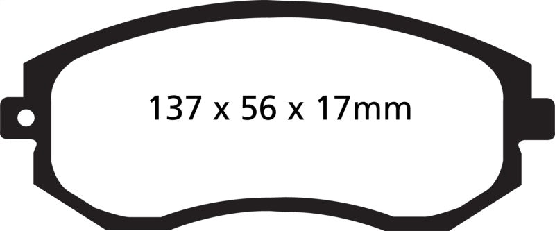 EBC Yellowstuff front brake pads are engineered with aramid fiber-based brake compound, delivering high braking performance from cold conditions. These pads are designed for both street and track driving, making them an ideal choice for enthusiasts who demand reliable stopping power in various driving environments. Unlike low dust alternatives, Yellowstuff pads provide strong braking effects without the need for warm-up, and they become even more effective as they heat up during aggressive driving sessions.