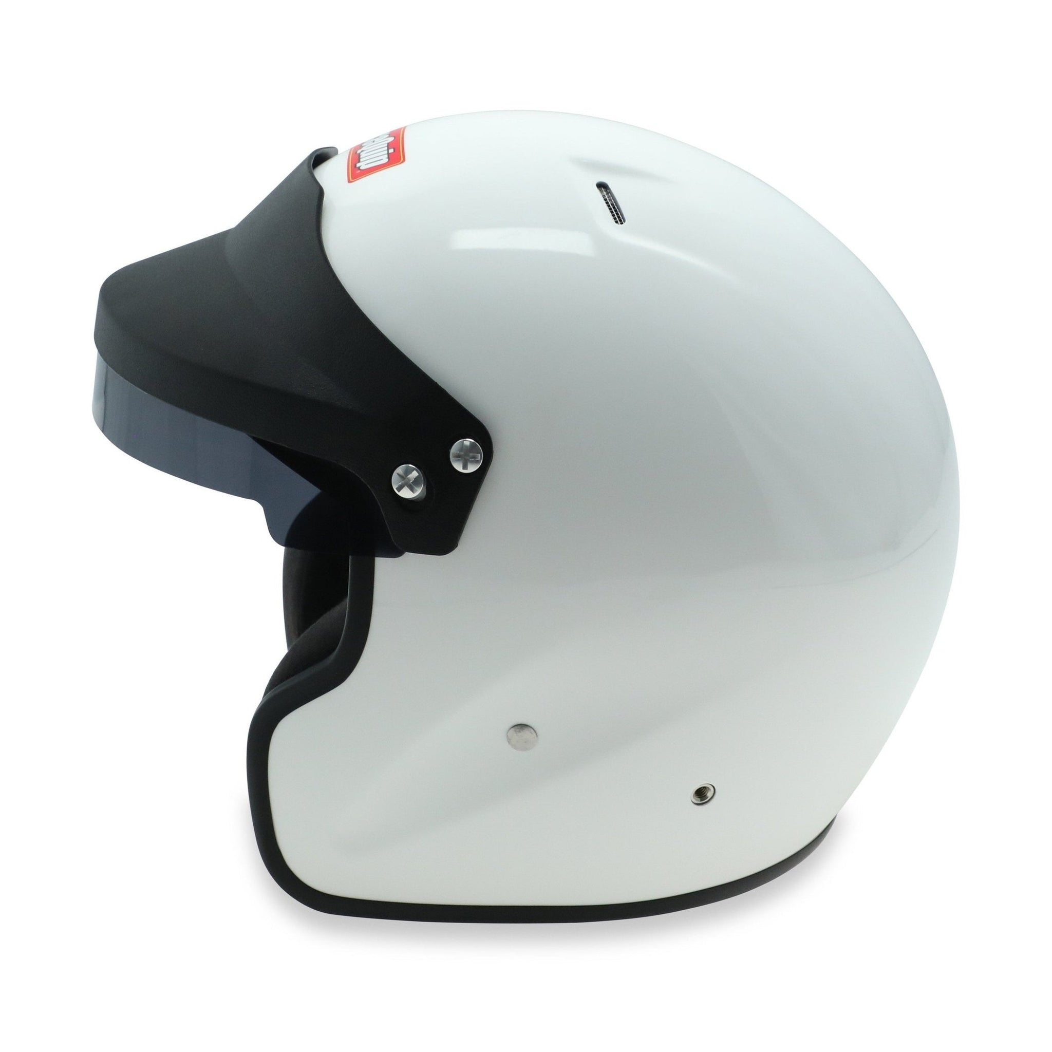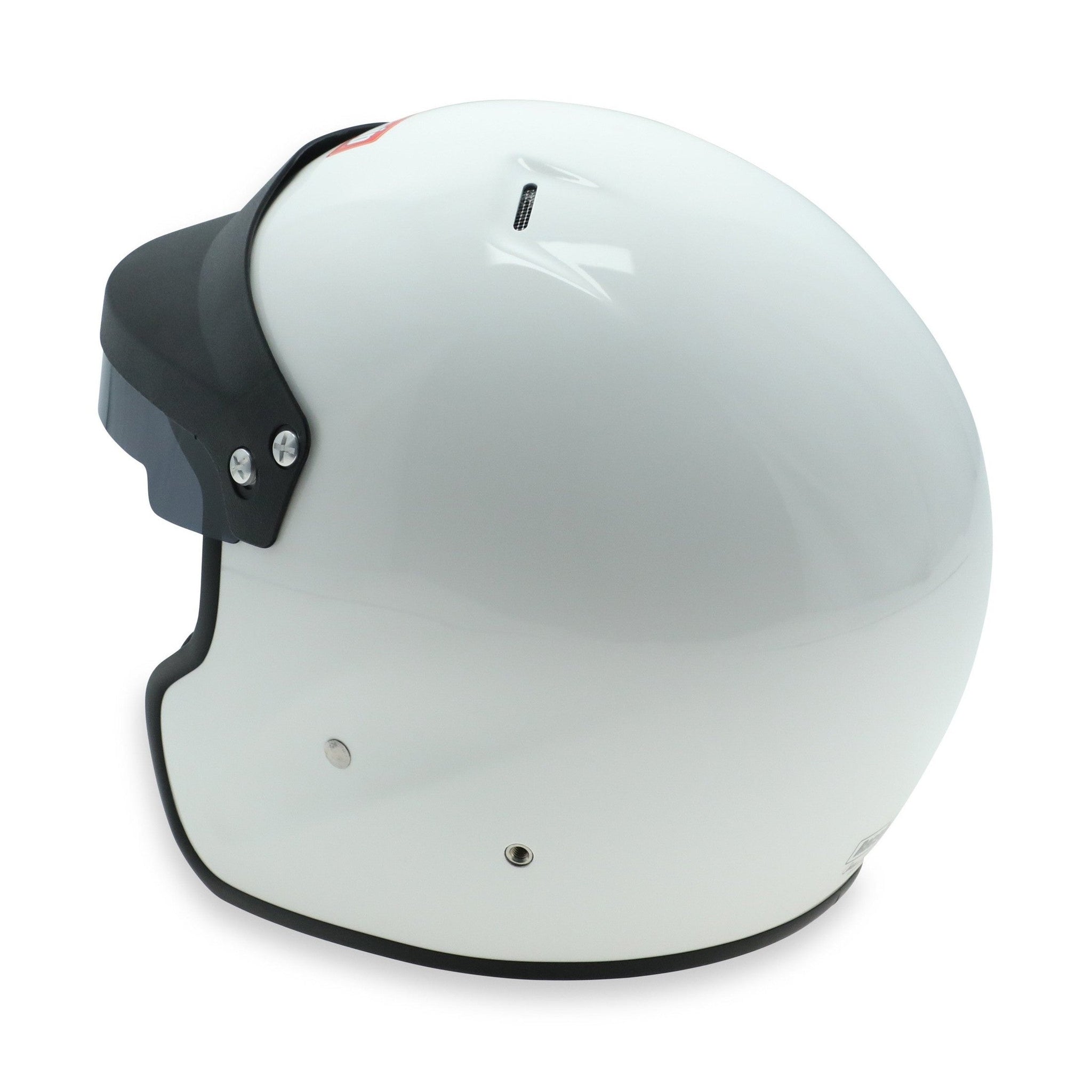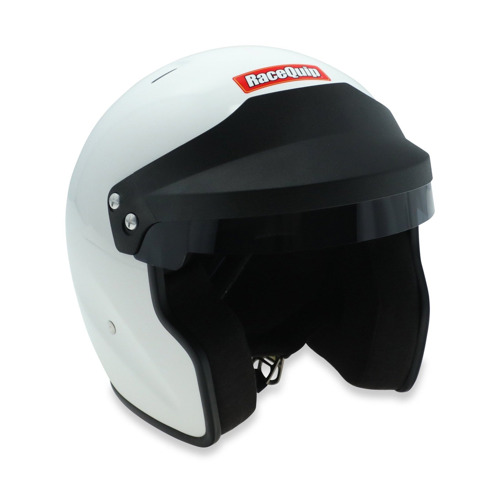 The RaceQuip OF20 is a Snell SA2020 rated open face auto racing helmet that incorporates classic styling with hand crafted production techniques. The FRP composite shell is hand laid to achieve a balance between light weight and strength. Reinforced M6 threaded HANS/HNR inserts are mated to the shell along with an expanded polystyrene (EPS) liner. HANS or other Head and Neck Restraint device anchor posts (not included) can be easily attached to the outside of the helmet using the installed M6 threaded inserts. A wide eye port provides good peripheral vision and allows the use of personal eyewear or goggles. The SA rating means that the Nomex interior and paint are fire retardant as well as the Kevlar chin strap, so the RaceQuip OF20 Helmet is suitable for use in all forms of motorsports. The comfort fit blended Nomex interior along with exhaust vents on the top of the shell help keep your scalp cool. All these features are wrapped in a hand laid FRP composite shell and the result is the outstanding value delivered by the RaceQuip OF20 Open Face helmet. If you drive a closed cockpit racecar and like the feel of an open face helmet, this is the model for you. Available in Gloss White or Gloss Black in sizes Small - 2XL. NOTE: This helmet is Snell SA2020-certified and is broadly accepted by race organizing bodies and tracks through 2030. Always verify safety rules with your sanctioning body.