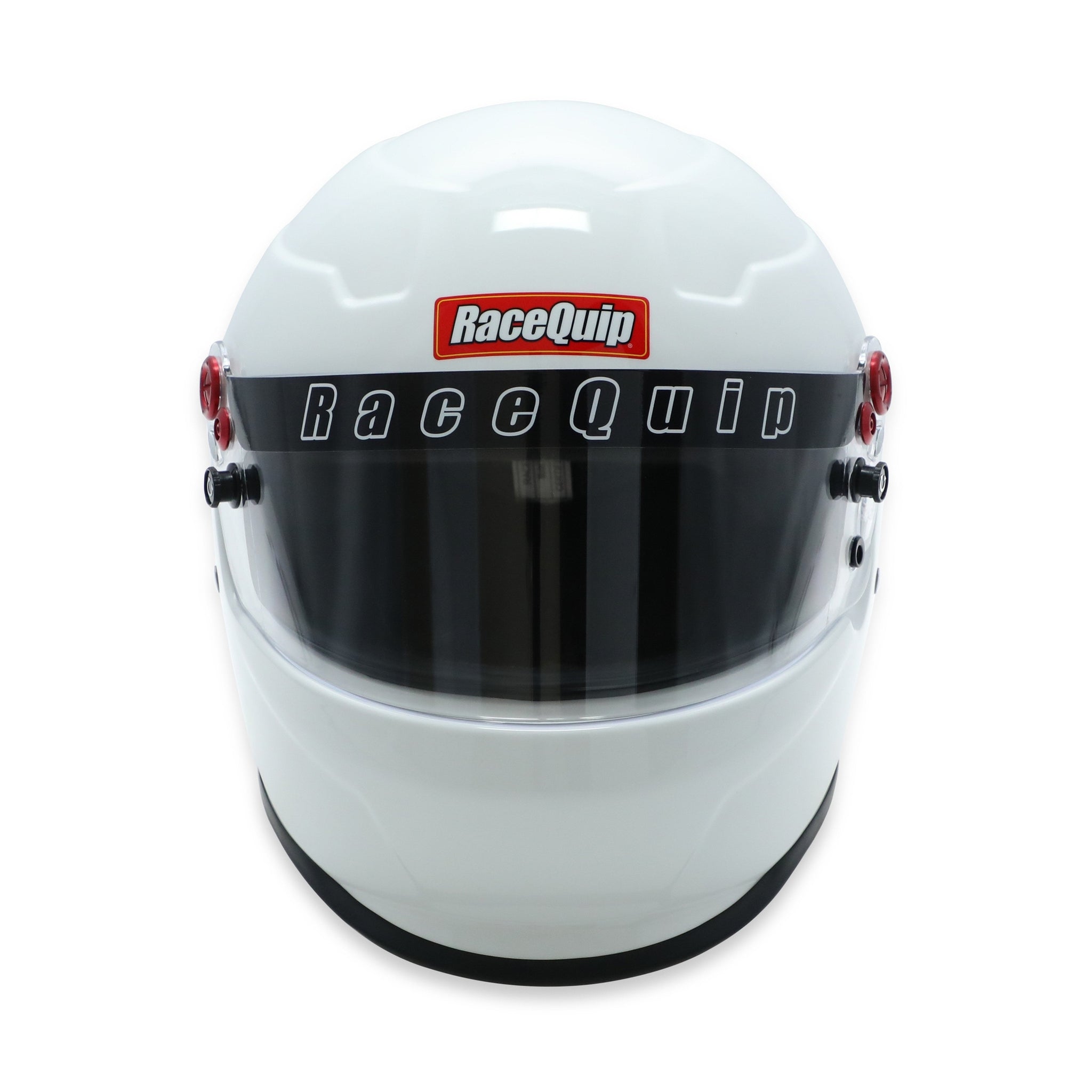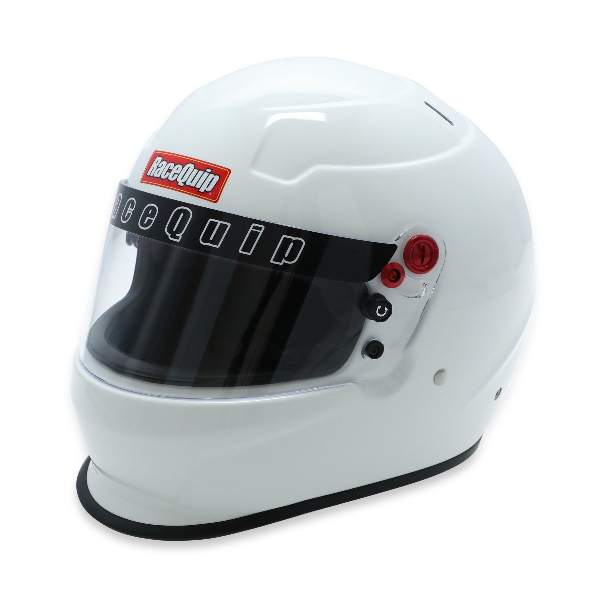 The RaceQuip PRO20 is a Snell SA2020 rated full face auto racing helmet that incorporates contemporary styling with modern production techniques. The shell is built using pre-preg composite materials placed into pressurized steel molds to achieve the best combination of light weight and strength. Reinforced M6 threaded HANS/HNR inserts are mated to the shell along with an expanded polystyrene (EPS) liner. HANS or other Head and Neck Restraint device anchor posts (not included) can be easily attached to the outside of the helmet using the installed M6 threaded inserts. The distortion free 3mm polycarbonate faceshield features a red anodized aluminum pivot kit, hand ratcheting TearOff posts, and a silicone eyeport gasket to seal out dust and dirt. A wide eyeport provides good peripheral vision and allows the use of personal eyewear. The Snell SA rating means that the interior, paint, and kevlar chin strap are all fire retardant so the RaceQuip PRO20 Helmet is suitable for use in all forms of motorsports. The comfort fit blended Nomex interior along with exhaust vents on the top and back of the shell help keep your scalp cool. All these features are wrapped in a stylish aero design FRP composite shell with a medium sized chin spoiler. NOTE: This helmet is Snell SA2020-certified and is broadly accepted by race organizing bodies and tracks through 2030. Always verify safety rules with your sanctioning body.