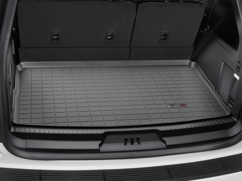 The WeatherTech 2018+ Ford Expedition MAX Cargo Liner in black offers comprehensive protection for your vehicle's cargo area. Designed specifically for models from 2018 onwards, this liner provides a custom fit that ensures full coverage of your trunk space. Constructed from a proprietary thermopolyolefin (TPO) blend, it is highly resistant to wear and remains flexible across a wide temperature range. The textured finish not only enhances durability but also helps prevent cargo from shifting during transit, making it ideal for hauling a variety of items. Its raised lip effectively contains spills, dirt, and grease, safeguarding your vehicle*s carpeting from daily wear and tear. This cargo liner is a practical addition for owners seeking to preserve their vehicle*s interior and maintain a clean, organized trunk area.