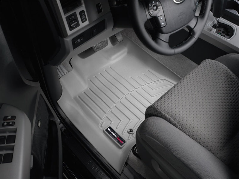 The WeatherTech DigitalFit Front FloorLiner in Gray is designed to provide comprehensive interior protection for your Toyota Tundra and Sequoia models from 2007 to 2011. Crafted with precision using digital laser measurements, this liner offers a tailor-made fit that seamlessly conforms to your vehicle's interior surfaces, ensuring maximum coverage and protection. The patent-pending High-Density Tri-Extruded (HDTE) material delivers a rigid core for durability while maintaining surface friction for a secure grip and tactile feel underfoot. This advanced material construction enhances the liner's strength and resilience, making it an ideal choice for rugged use.