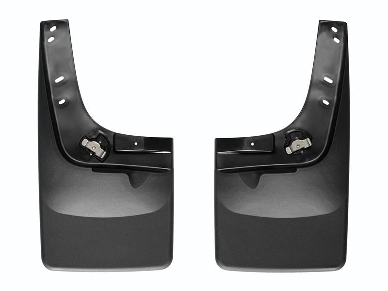 Enhance your GMC Sierra's exterior protection with the WeatherTech DigitalFit No-Drill MudFlaps. Designed specifically for 2014 models including the Sierra 1500, 2500 HD, and 3500 HD, these mudflaps provide a tailored fit that contours seamlessly to your vehicle*s body for a clean, professional appearance. Crafted from a proprietary thermoplastic resin, they are durable, flexible, and resistant to the elements, ensuring long-lasting protection against stone chips, dirt, slush, and debris that can cause damage to your vehicle's vulnerable fender and rocker panel areas. The black finish complements the truck's aesthetic while maintaining a low profile that does not detract from its rugged look.