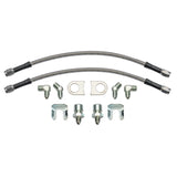 The Wilwood 12-inch Flexline Kit with Weld-On Bracket Tabs (Part Number Wil220-17288) is a versatile and durable solution designed for automotive brake systems. Crafted by Wilwood, this kit features a flexible hose length of approximately 12 inches, ensuring ease of installation and reliable performance in various vehicle configurations. The kit includes a 90-degree bend flexline with fittings ranging from -3 to 3/8-24 Internal Female (IF) and 1/8-27 NPT, providing compatibility with a variety of brake components and fluid line connections. The weld-on bracket tabs facilitate secure mounting, ensuring the flexline remains in place during vehicle operation, reducing the risk of wear or damage over time. Constructed from high-quality materials, this flexline kit is designed to withstand the rigors of automotive use, offering both flexibility and strength for optimal brake performance.