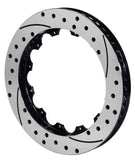 The Wilwood SRP Drilled Performance Rotor, part number WIL160-8396-BK, offers exceptional braking performance with a specially engineered directional cross drill and face slot pattern. These features enhance brake response and pad performance across the entire range of light to heavy braking scenarios. The vented design promotes effective cooling by dispersing heat and gases generated during braking, which reduces pad glazing and maintains optimal brake pad-to-rotor contact. This results in smoother engagement and improved pedal feel under various driving conditions. Additionally, the drilled holes and slots help prevent irregular pad compound build-up on the rotor surface, ensuring consistent braking performance. The removal of material during manufacturing also contributes to a reduction in unsprung suspension weight, which can positively impact handling and ride quality. Crafted from durable materials, this rotor is designed for high-performance applications and is compatible with 12-lug bolt patterns, fitting 14.00-inch diameter brake systems with a 1.25-inch thickness. Whether used for street performance or spirited driving, the Wilwood SRP rotor is engineered to provide reliable, consistent braking power with a focus on heat dissipation, pad stability, and overall braking efficiency.